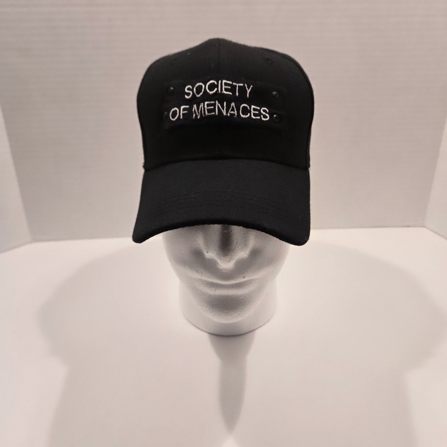All back Society of Menaces hat. Easy to mach with any clothing!